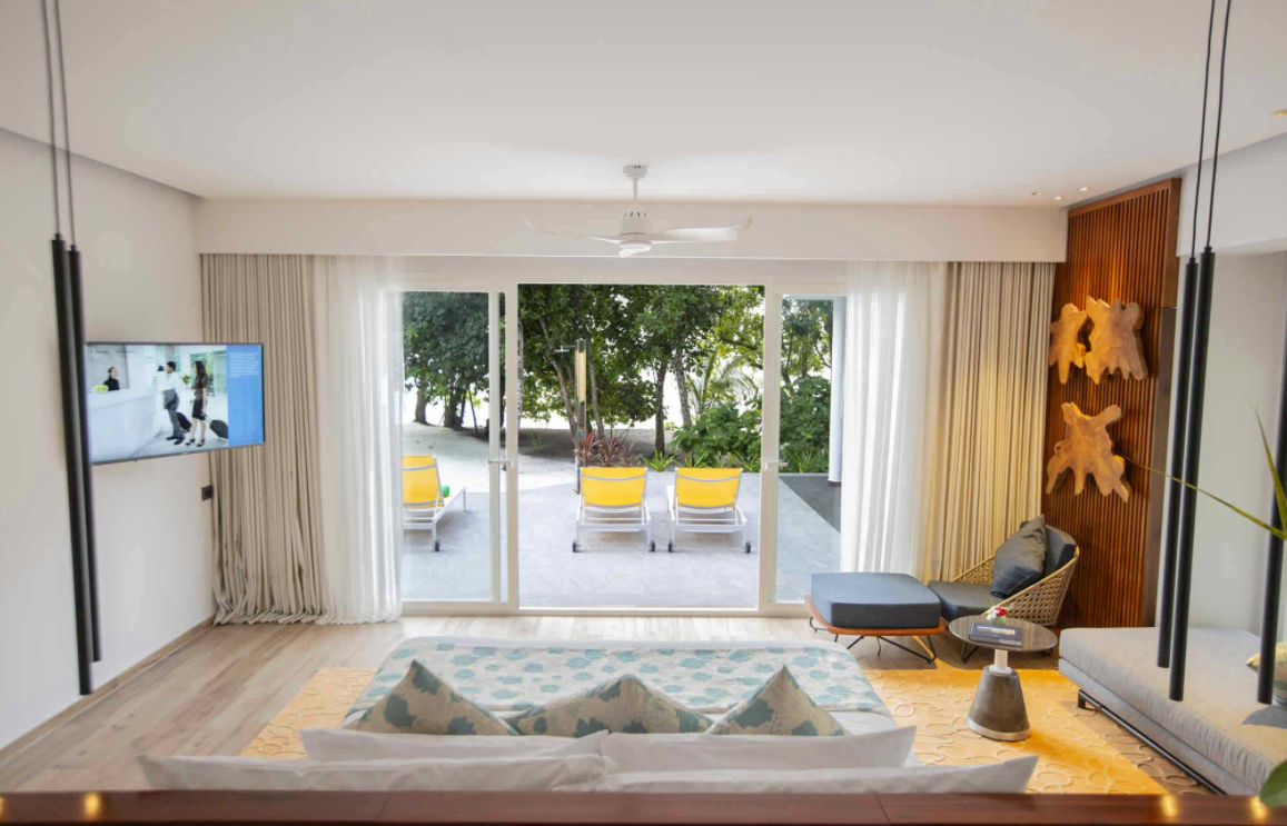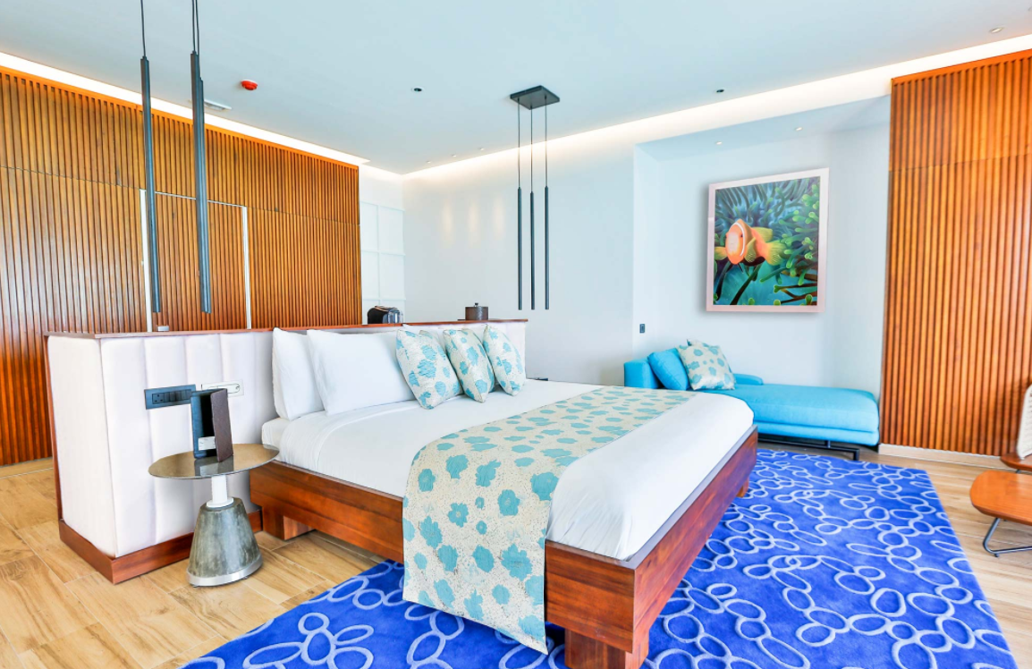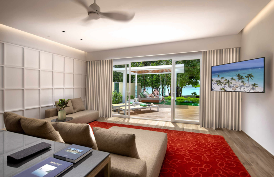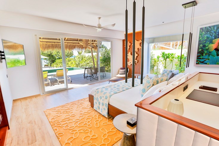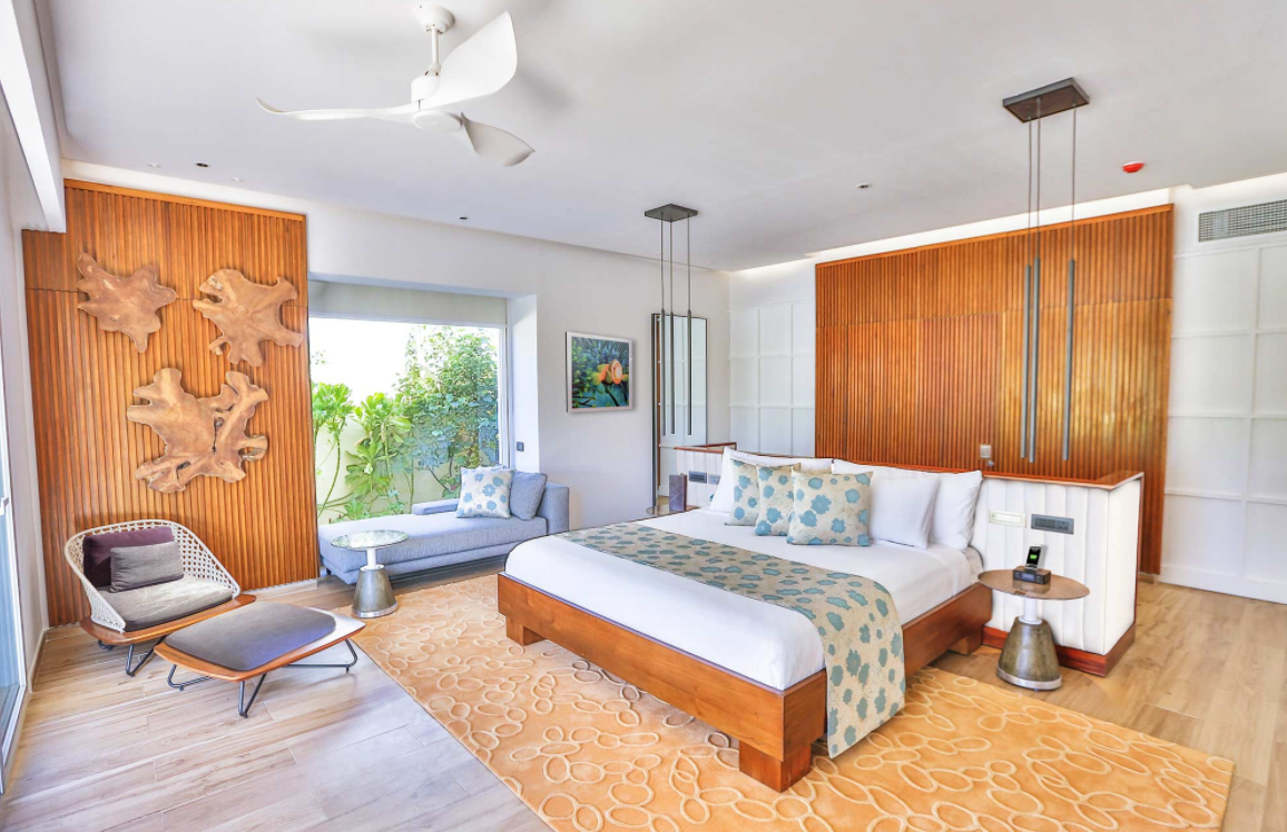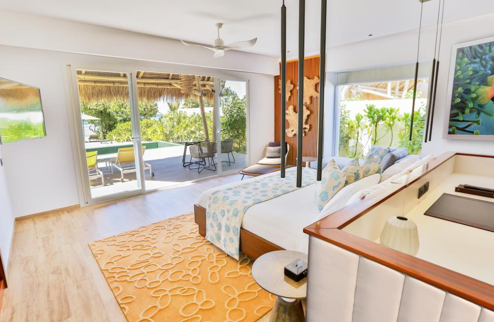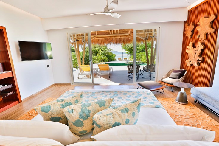 海滩泳池别墅,海景,142平米 位于海滩,距珊瑚礁几步之遥 衣帽间,1卧室,阴凉区,私人泳池 海滩泳池别墅,大床及沙发床。现代简约风格装潢。木质地板,位于海滩,距珊瑚礁几步之遥。私人阴凉区供您享受海洋美景,衣帽间,免费迷你小冰箱,茶&咖啡设备,保险箱,卫星电视,空调,室内及室外淋浴,室外花园浴缸间,双洗脸盆,独立卫生间。