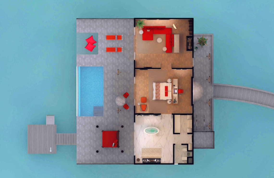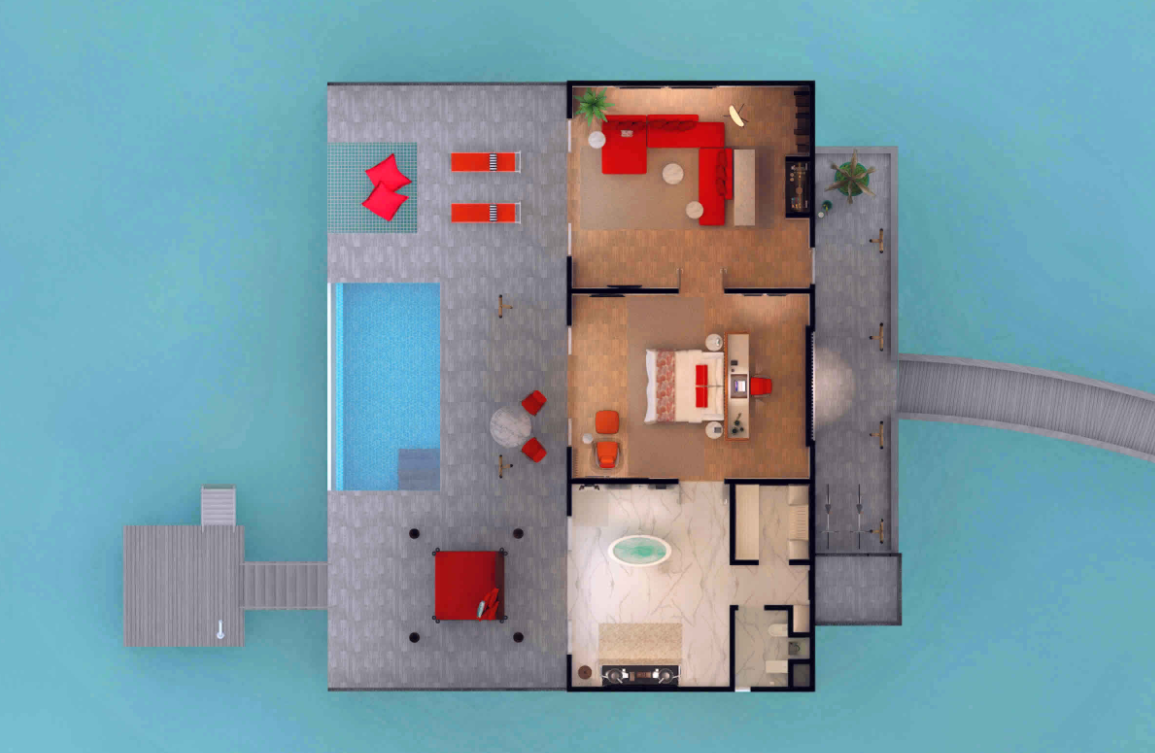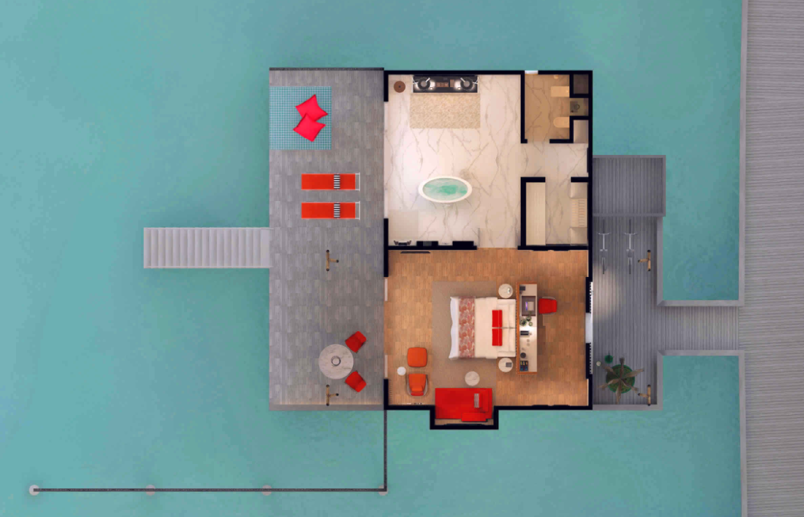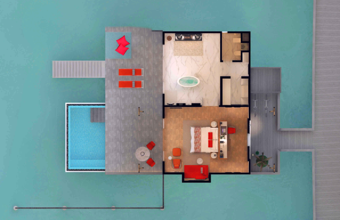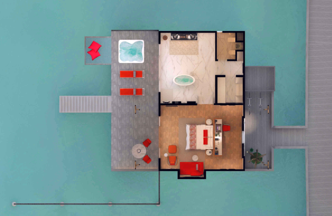 高级海洋泳池别墅,244平米 位于海上,距珊瑚礁几步之遥 衣帽间,1卧室,阴凉区,私人泳池 高级海洋泳池别墅,大床及沙发床。现代简约风格装潢。木质地板,位于海上,距珊瑚礁几步之遥。私人阴凉区供您享受海洋美景并可从别墅内直接入海,衣帽间,免费迷你小冰箱,茶&咖啡设备,保险箱,卫星电视,空调,室内及室外淋浴,室外花园浴缸间,双洗脸盆,独立卫生间。