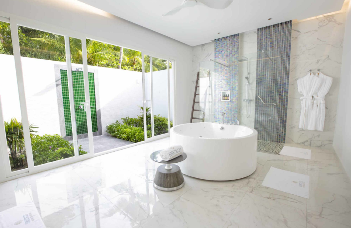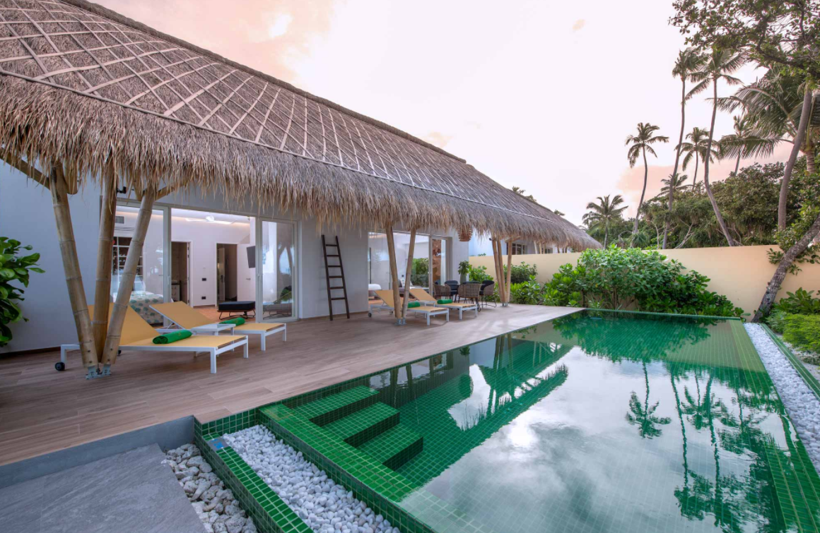这个占地20公顷,有120个别墅的翡翠马尔代夫度假酒店由现居住在新加坡的美国建筑师Edward David Poole设计,使用竹子和石材等天然材料。