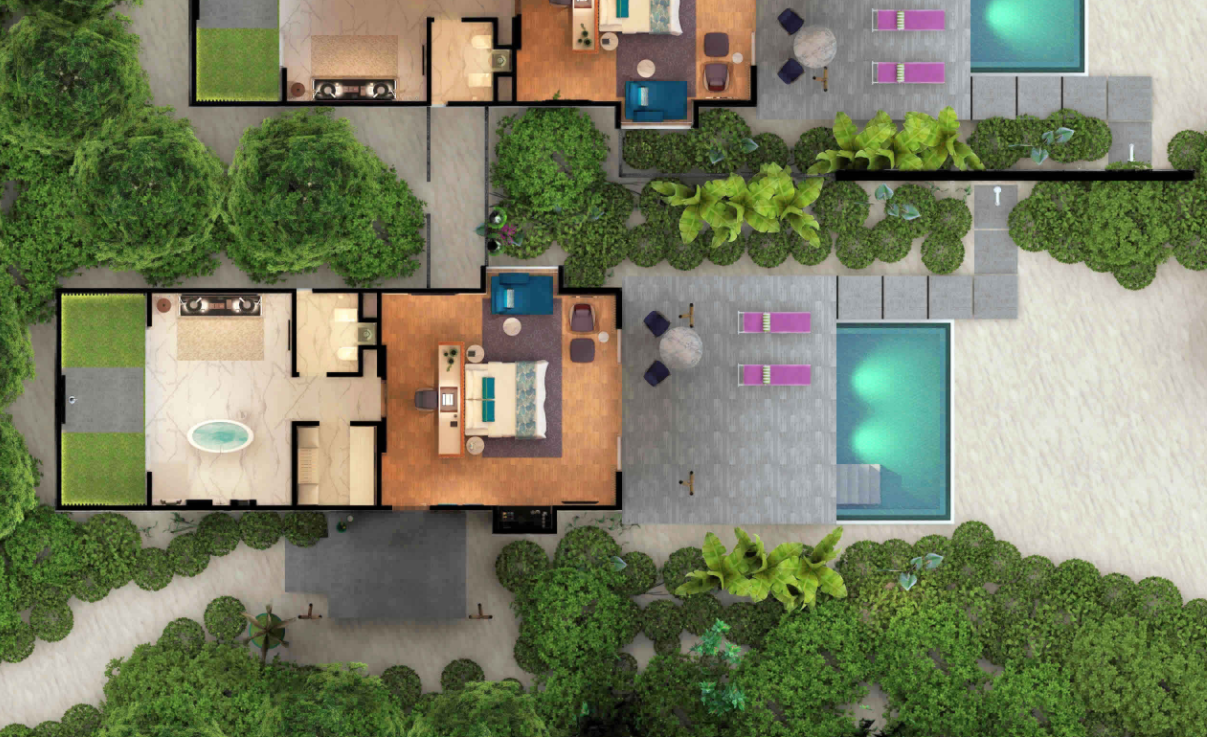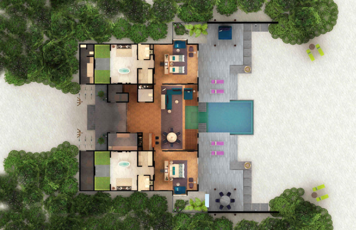 | 水Superior Water Villa with Pool--高级水上泳池别墅 | 2 | 244㎡ | √ | 2大2小 / 4大 |