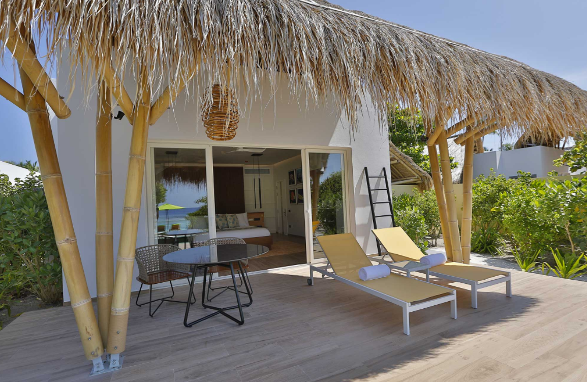 海滩别墅,海景,127平米,1卧室 位于海滩,距珊瑚礁几步之遥 衣帽间,室外花园浴缸间 海滩别墅,大床及沙发床。现代简约风格装潢。木质地板,位于海滩,距珊瑚礁几步之遥。私人阴凉区供您享受海洋美景,衣帽间,免费迷你小冰箱,茶&咖啡设备,保险箱,卫星电视,空调,室内及室外淋浴,室外花园浴缸间,双洗脸盆,独立卫生间。