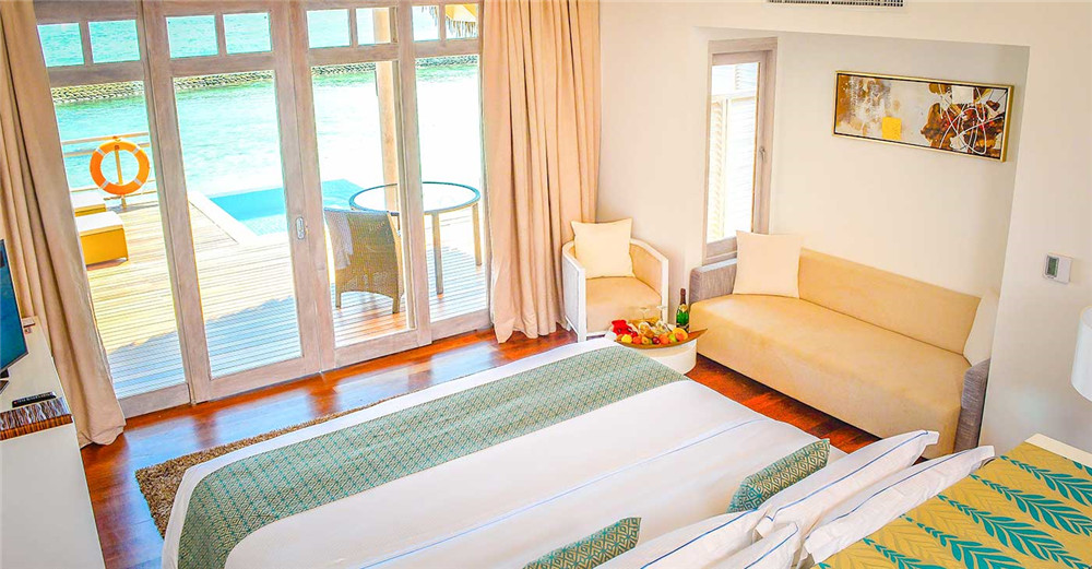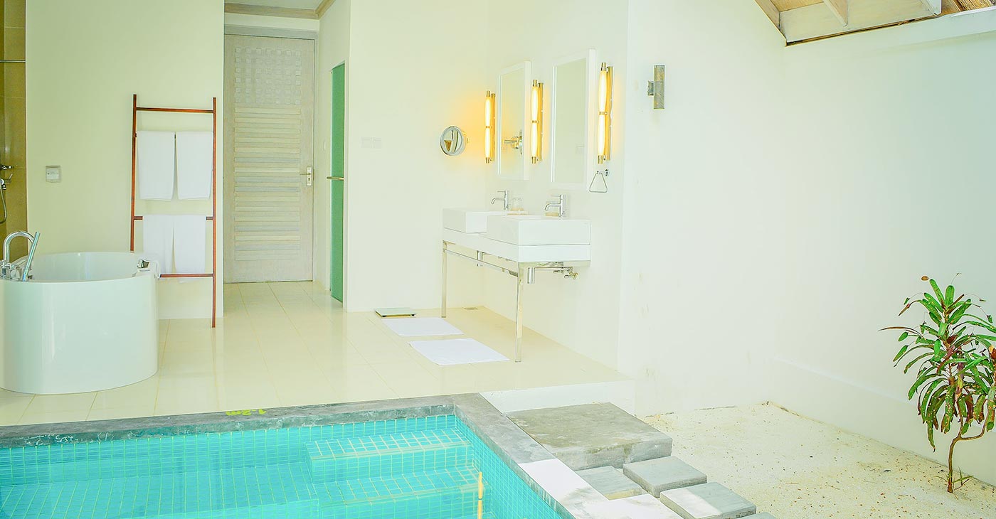 房间是环绕在海岸线与礁湖之间,为您带来一次全新的独家礁湖住宿体验。宽敞的私人浴室及巨大的海滩阳光甲板和无边泳池,这是一次奢华的爱的体验。