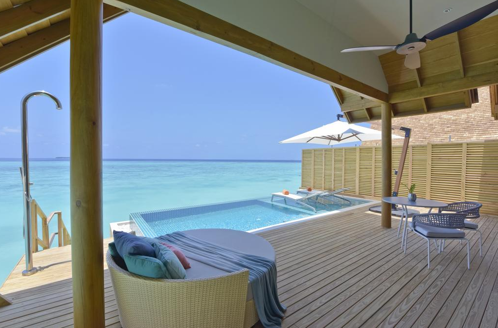 海洋泳池别墅采用温暖的木质色调和宽大的玻璃设计而成,在这里,你能最大限度的感受到海洋的魅力,别墅可直接下海浮潜。