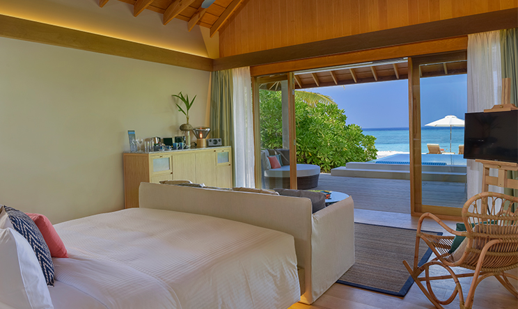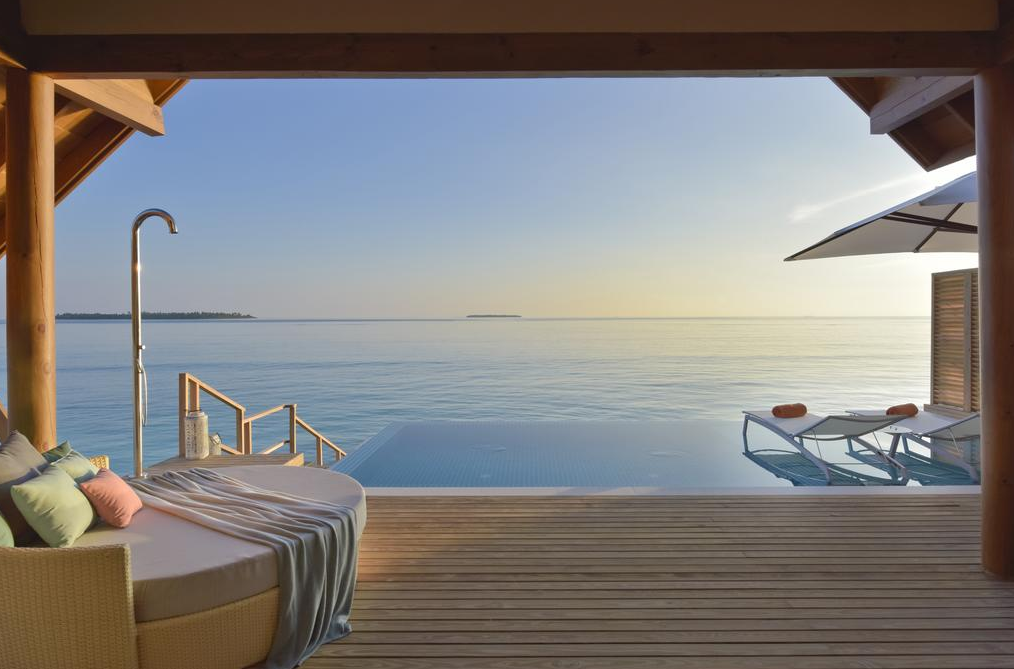 【与泳池别墅的房型差不多,就是大一些】入住海洋泳池套房可欣赏到广阔犹如绿松石般美丽的海景。