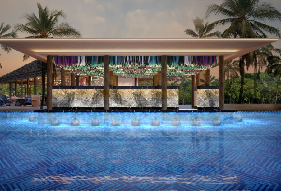 硬石酒店 (HARD ROCK )座落在卡夫环礁(Kaafu Atoll),注意:卡夫环礁以前是分为北马累环礁与南马累环礁的。从马累国际机场搭乘快船15分钟即可到达。属于中型岛屿,环岛一周步行约14分钟,周长约1360米,面积9.24万平方米(494米*187米)。于2019.9.1开业。