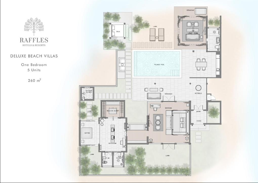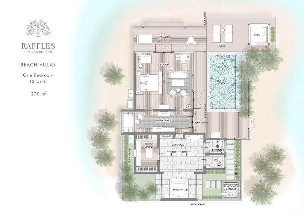 房型介绍:这座别墅从你进入的那一刻起就令人惊叹不已。室内调色板从海洋环境中汲取灵感,舒缓感官。宽敞的户外空间,包括一个私人花园和游泳池,一个宽敞的阳台直接对着海滩,你可以完全放松,并吸收这个特别的地方的不寻常的氛围。走出去一步,感受海风带走你的烦恼。大多数海滩别墅面向东或西。如果你起得早,在你看日出的时候要一杯冷的、新鲜的果汁或热的、美味的咖啡。或者,请我们著名的莱佛士杜松子酒和滋补品,在落日的琥珀色光芒中啜饮。