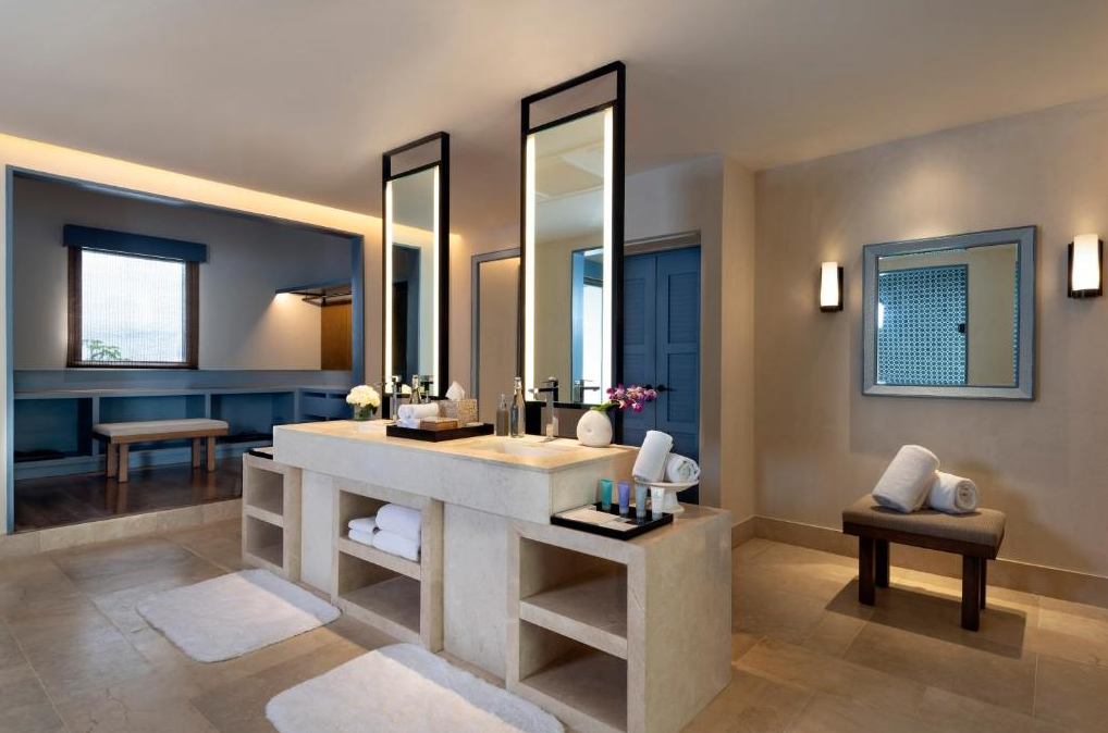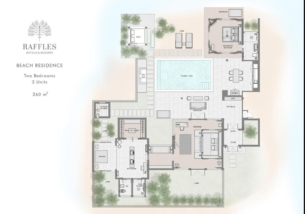 房型介绍:私人花园和游泳池之间两个独立的建筑,海滩住宅成就理想品质的家庭时光。它的不同区域和谐地连接在一起,创造了丰富的非凡的室内外空间。主卧室是完美的。从特大号四柱床到巨大的浴室套房,包括一个巨大的下沉浴缸,步入式衣柜,淋浴间和豪华的梳妆台。第二间卧室正对着海滩。它是感受早晨第一缕阳光,看到第一缕星光的地方。两幢建筑之间是景观室外游泳池和露台,有自己的海滨sala,还有泳池边的起居和用餐区,有睡床、沙发、餐桌和休闲座椅。在您的别墅有充足的家庭空间,帮助您一起留下难忘的回忆。