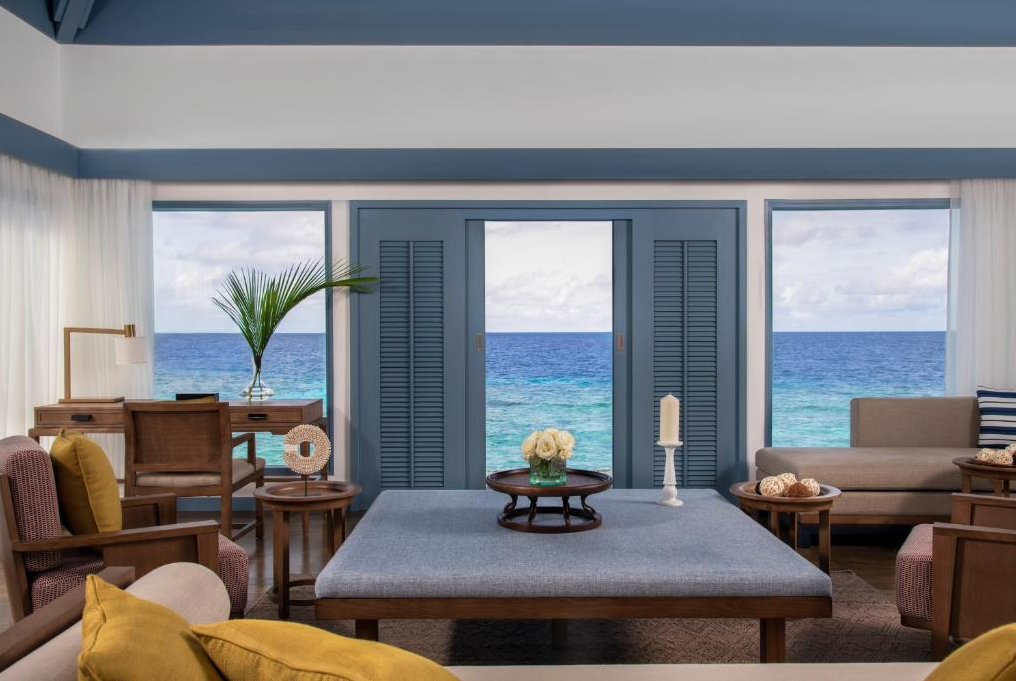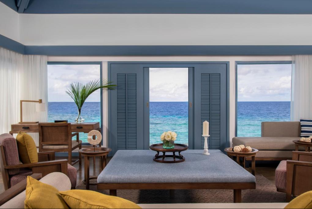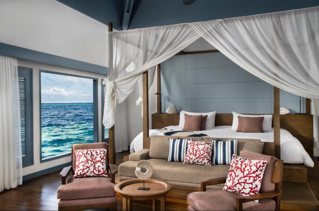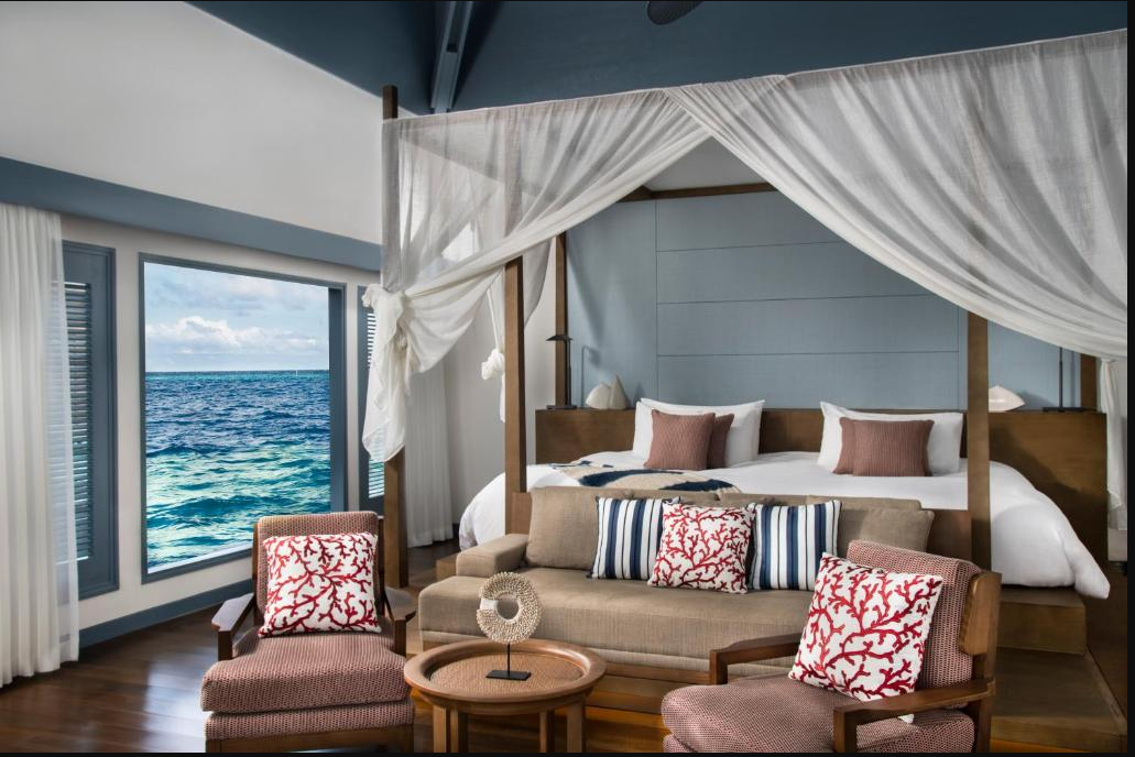 房型介绍:大自然为水上别墅提供了背景,太阳在平静清澈的泻湖水面上闪闪发光,水面下五彩缤纷,鱼在你脚下的海底飞掠而过,夜空中最亮的星星在闪烁。它是欣赏自然界奇迹的完美平台。在你的别墅里,舒适是精心策划的。打开整个区域,让微风和海声吹拂,或者封闭生活区,让空调带来舒适。放松在你的私人游泳池或室内深浴缸或利用的终极特权-从你的阳台下到清澈的泻湖水域,与海洋生物交流。