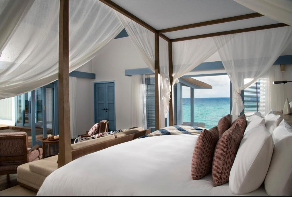 房型介绍:日落水上别墅拥有广阔的海景,令人惊叹的日落景观,漫天的繁星。无论你是在时髦的四柱床上还是在泳池边的睡床上观看这场神奇的表演还是选择在厨师为您准备在您的别墅享用美味佳肴的同时,用一杯清凉的饮料来庆祝逝去的日子,在这里共度的时光都是值得永远珍惜的时光。如果你们正在度蜜月,请允许我们为你们的每一天都做些特别的事情,来庆祝你们的结合。如果你打算求婚,请允许我们为你准备一切,以增强你选择的时刻。