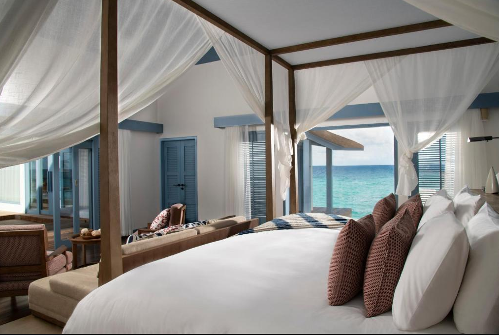 房型介绍:水上住宅拥有两个独立的卧室,一个客厅,华丽的浴室和一个私人游泳池在闪闪发光的绿松石泻湖。它们是令人难以置信的高品质住宅,设计巧妙,在室内提供绝对的隐私,在室外提供巨大的放松空间。水上住宅坐落在泻湖的最顶端。从这个位置看到的风景是如此广阔和令人振奋,这真是一个令人难忘的地方。也许最壮观的是主卧室的景色。在这个富丽堂皇的空间里,有高高的天花板和巨大的窗户,面对着周围的大海,你是在纯净、富丽堂皇的优雅中。