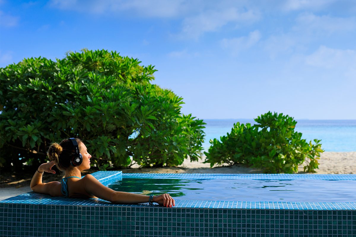 享受泳池别墅体验,并与另一位志同道合的独行旅客分享价格。5个独行旅客水上泳池别墅提供全套度假体验,无需支付额外费用。男性和女性分配的别墅面向泻湖或海洋,每个别墅都有自己的私人游泳池。