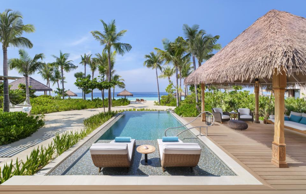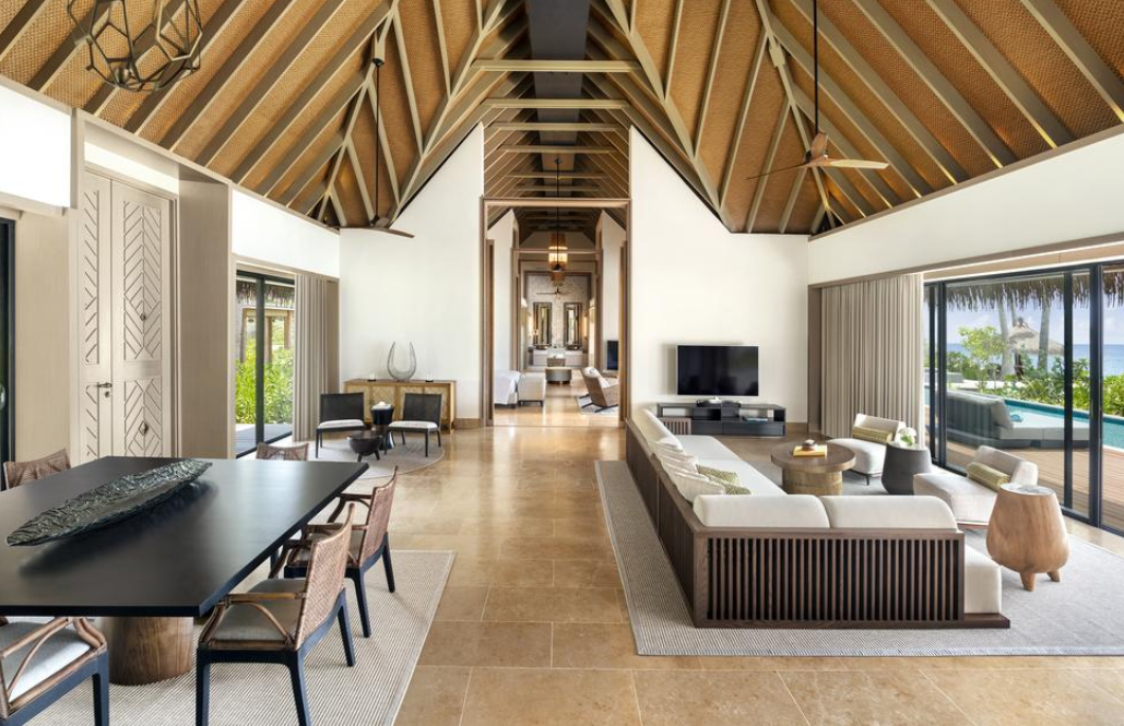 宽敞的别墅面积为 234 平方米,设有泳池、凉亭,可直达沙滩。 宽敞卧室和华美浴室均设有落地窗和推拉门,可将辽阔的木质露台、花园和海洋景观尽收眼底。卧室设有华尔道夫特大床、休息区、65 英寸电视和音响系统,分设男女衣橱均可通往浴室,浴室设有室内和室外淋浴、梳妆台和超大浴缸。露台设有泳池、吊床、用餐凉亭和日光浴躺椅。 有分为大床房和双床房。