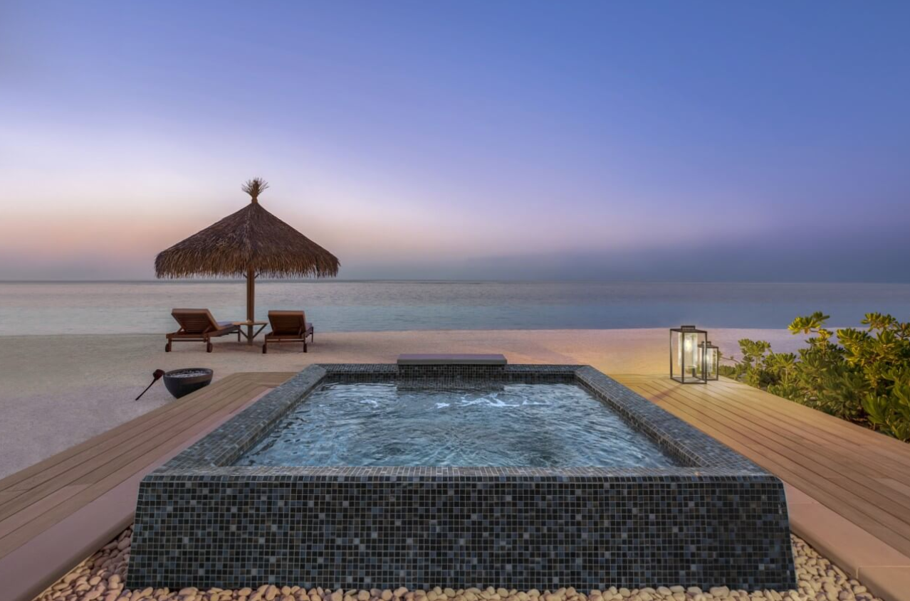 这些豪华别墅提供宽敞的起居和放松空间。两间卧室均提供私密空间和私人休息区,宽敞的起居室配备宽大沙发、餐桌和先进的视听系统。落地窗可观赏热带美景。室外设有豪华用餐空间、无边际泳池、热水浴缸,遮荫躺椅可用于日光浴或放松休闲,还可直达沙滩。
