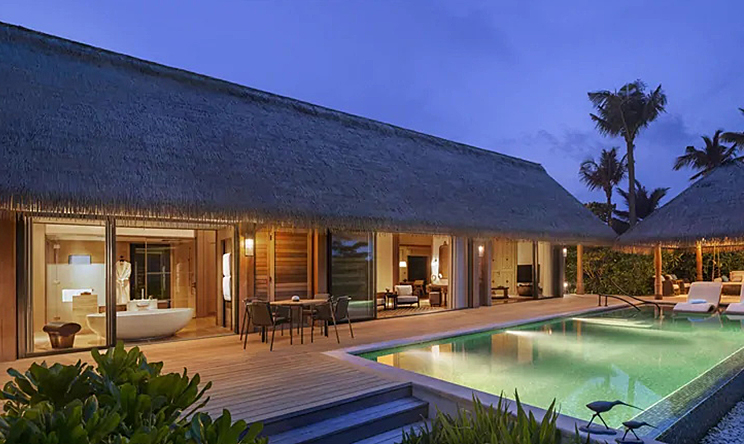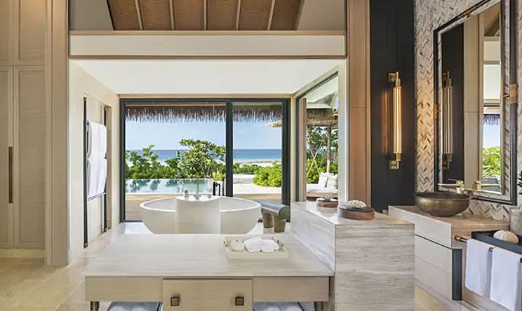 宽敞的别墅面积为 234 平方米,设有泳池、凉亭,可直达沙滩。 宽敞卧室和华美浴室均设有落地窗和推拉门,可将辽阔的木质露台、花园和海洋景观尽收眼底。卧室设有华尔道夫特大床、休息区、65 英寸电视和音响系统,分设男女衣橱均可通往浴室,浴室设有室内和室外淋浴、梳妆台和超大浴缸。露台设有泳池、吊床、用餐凉亭和日光浴躺椅。 有分为大床房和双床房。