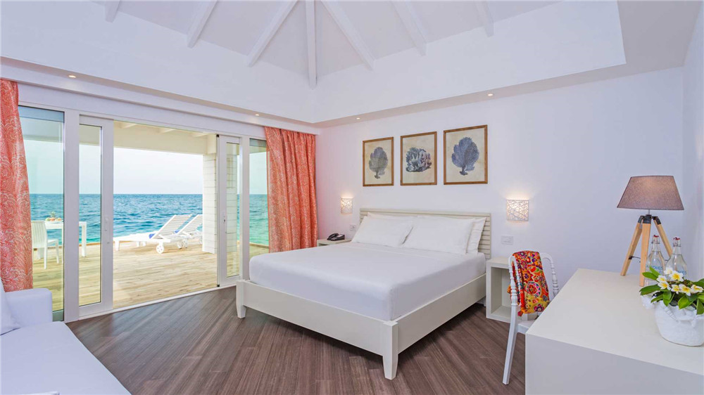 水上别墅设有私人甲板,位于岛屿东侧的泻湖内,是最佳的观赏海景之地,从房间一眼就能望见整个印度洋,美丽的马尔代夫逐渐呈现在你眼前。