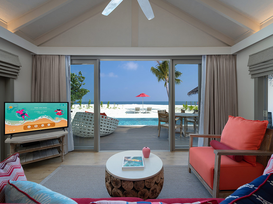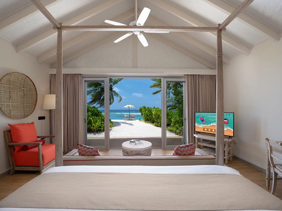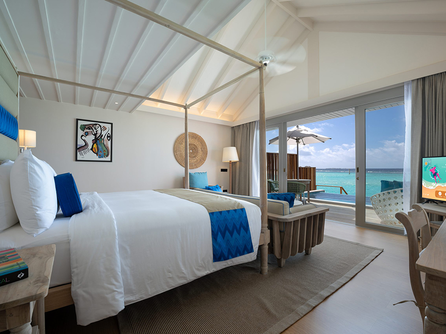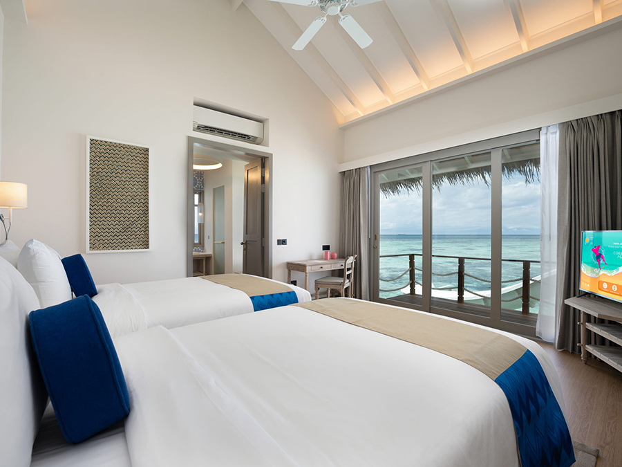 马尔代夫科拉科拉岛(Cora Cora Maldives),位于拉环礁(Raa Atoll),从马累出发乘坐45分钟水上飞机或乘坐30分钟内飞转乘20分钟快艇即可抵达。这属于一家白金一价全包酒店,于2021年10月1日正式开业,豪华五星的定位,有一条美丽的拖尾沙滩。来这里度假,主题就是吃、喝、玩、乐。酒店总共有100间房,装修以现代简约为主,基础房型不带私人泳池,特色就是它的“双卧室家庭水上别墅”配备了一个滑梯,但仅仅也只有这种家庭房型有滑梯而已。