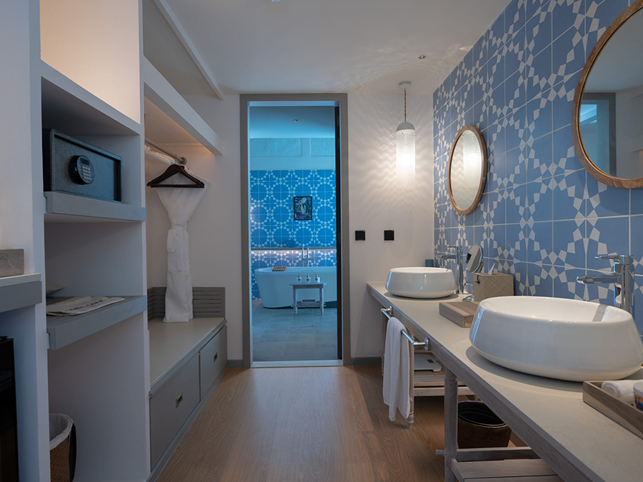 房型介绍:这是酒店唯一一栋带滑梯的别墅,面积达到了234平米,总共有2间卧室,可以看日出。主卧室位于楼上,隐私性可以完全得到保障。这是一个充满家庭聚会的宫殿,住在这座海洋顶级别墅里,就代表你拥有一切。两间卧室都有相邻的浴室——既大又能看到海景。观看日出时,在甲板上分享茶和热巧克力,然后在孩子们在甲板上的游泳池里溅起水花时,放松一下日光浴。
