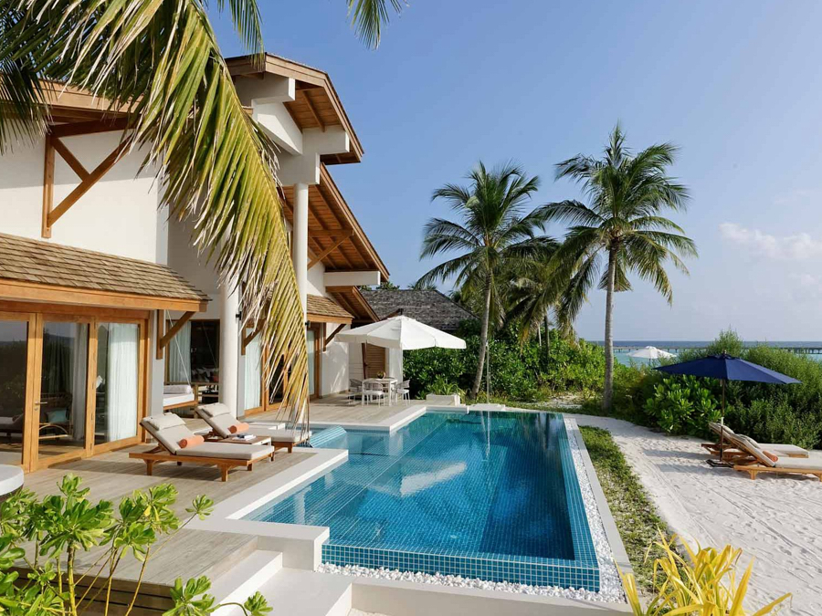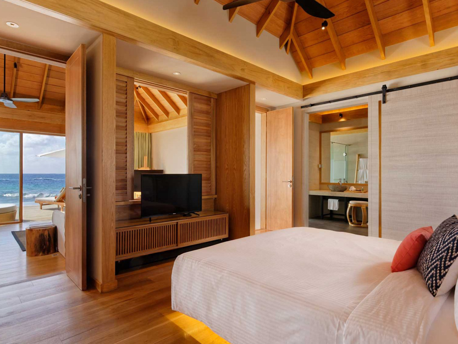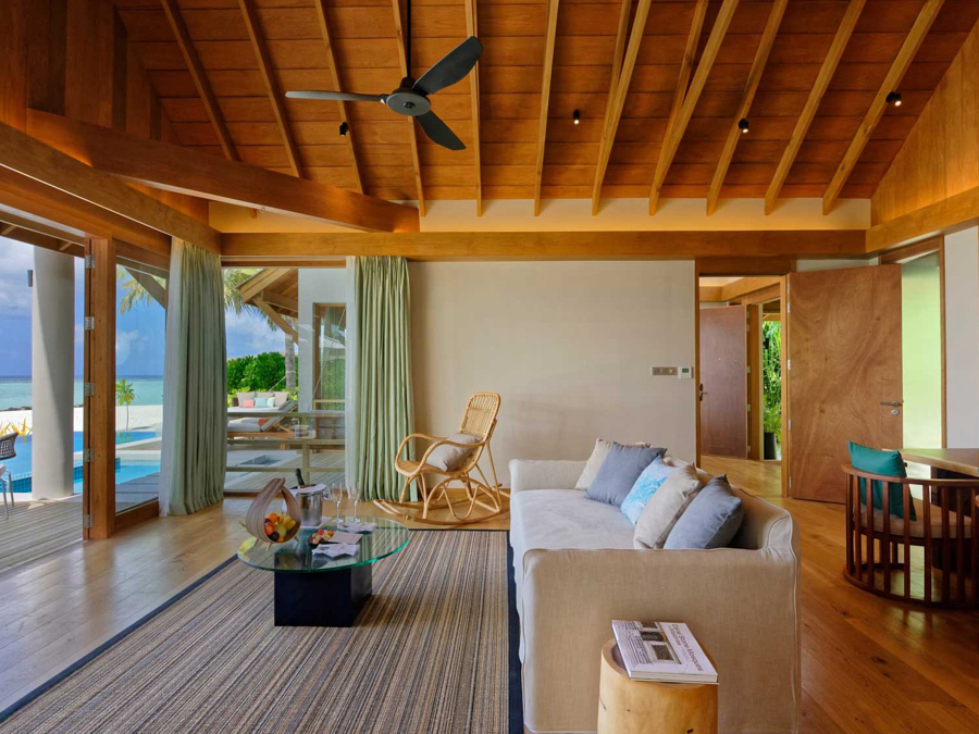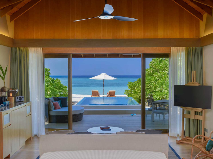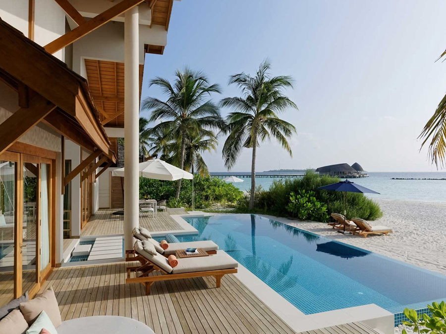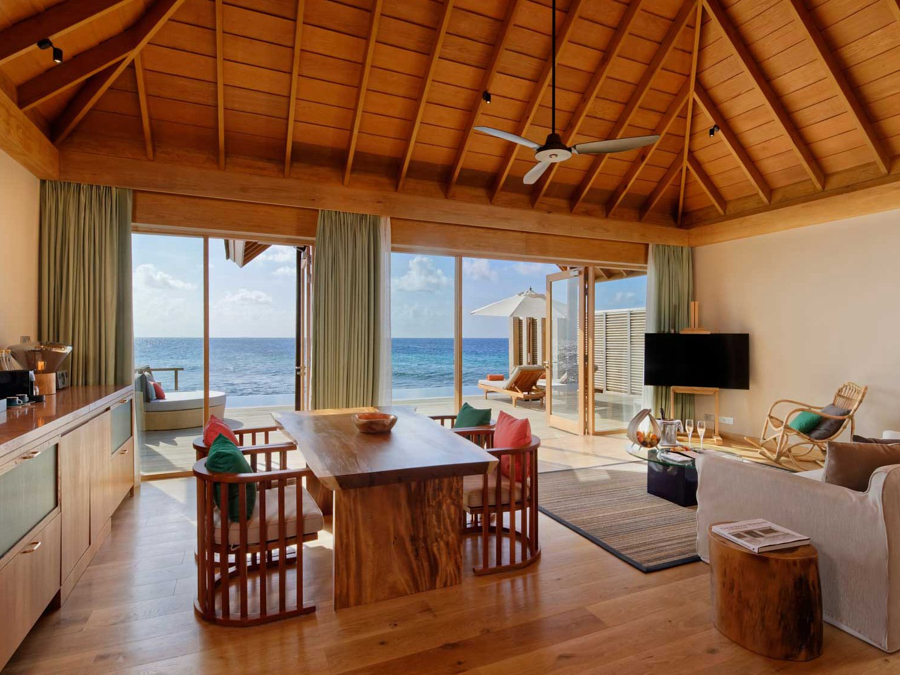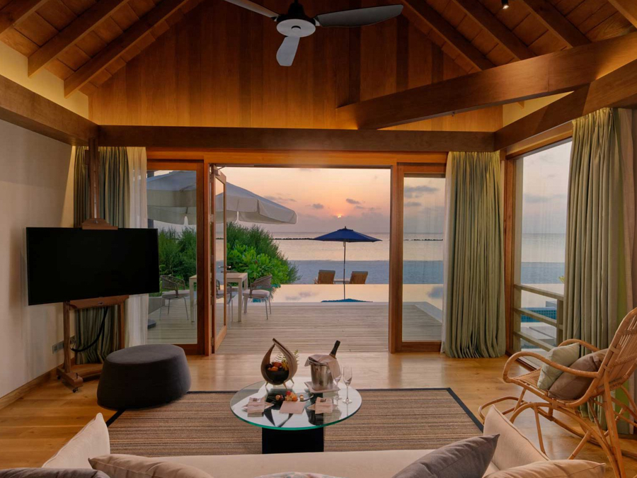 房型介绍:家庭沙滩泳池别墅是有孩子的家庭的完美选择。他们有一条通往度假村白色沙滩的前排通道。延伸至地平线的广角视图。拱形天花板、极简装饰和落地窗每天早上都能看到前方和中心的景色。最后的繁荣:前门和大海之间的私人跳水池。他们还拥有一个私人无边泳池、大衣柜、空调浴室和一个带休息室家具的私人露台。