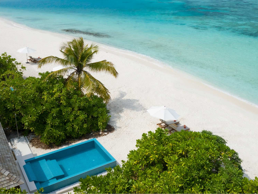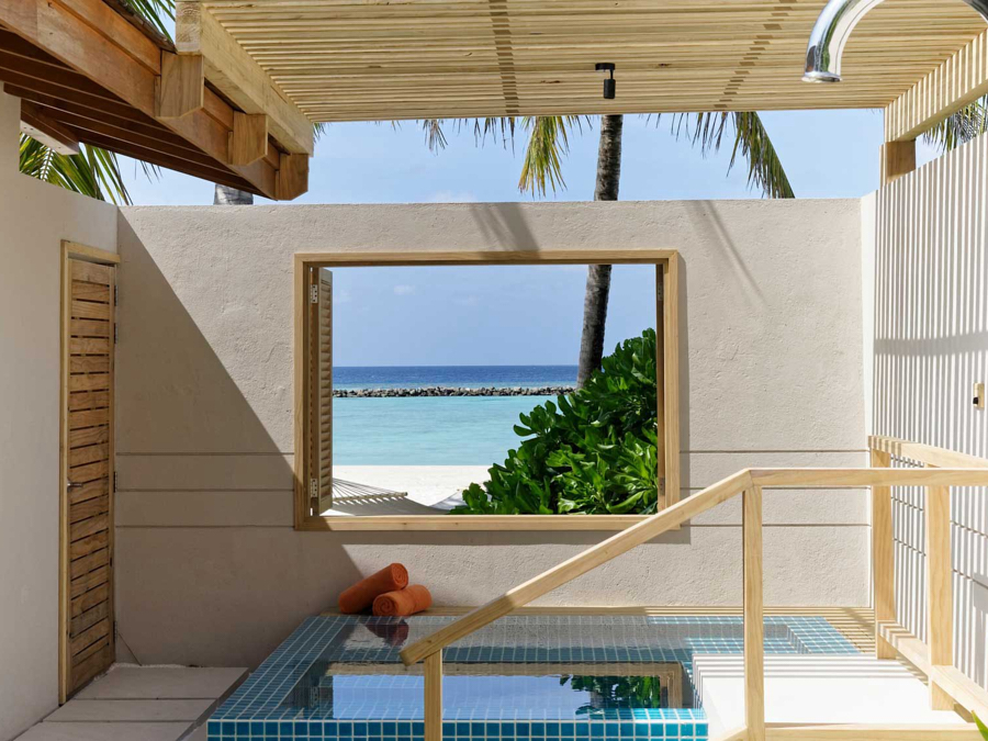房型介绍:沙滩泳池别墅面积更大,位置更好,并且还拥有一个4*6米的私人泳池。别墅有拱形天花板、极简装饰和落地窗每天早上都能看到前方和中心的景色。他们还拥有一个私人无边泳池、大衣柜、空调浴室和一个带休息室家具的私人露台。