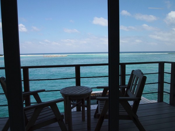 我们住的水屋是面朝纯大海的一面,也是观日出的一面,还有另一面4间房是面向居民岛的,相对视野会差点,但是有不同风情,不过一般情况大家都不会选择。这也得看运气,像我们去的时候岛上客满,房间是酒店给排的,如果你被分在另一边,抱怨也没有用,因为水屋只有那么些,祝去的童鞋好运哈~