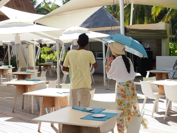 酒店大厅和像炮楼一样的Kitchen餐厅挨着,应该是Kandooma岛上的两个标志性建筑物。每天早餐的时候都会有小黑向你推荐去Kitchen用餐,虽然那里的环境不错,但价格也非常不错,至于味道嘛,我只能说因人而异,呵呵