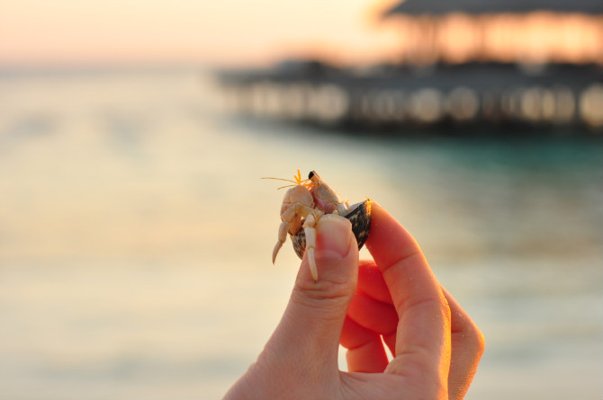 岛上的寄居蟹,小黑教我们咕噜咕噜它就会出来,特别好玩~