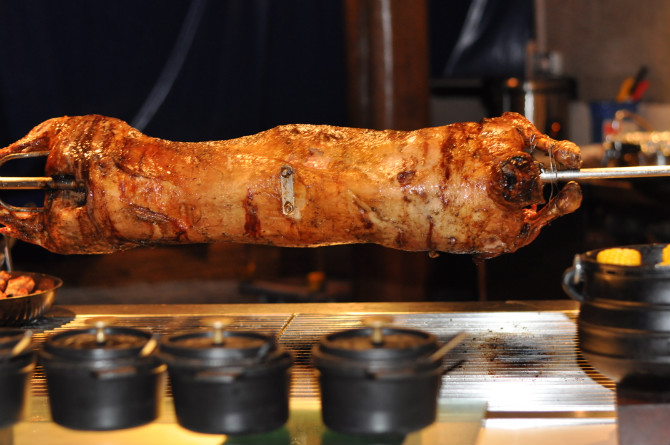 吃晚餐的地方,FIRE 自助餐,98美金一人,加上税和服务费等,最低要110左右一人~还不带酒水的,酒水非常贵,一瓶普通红酒要200美金一瓶~不过里面有很大的大虾和烤全羊~