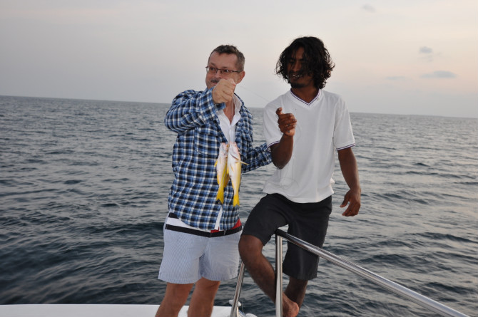 两个小时的海钓结束啦。大家都非常开心。我们去的是4对。总共钓到了4条大鱼,哈哈,我们一起在fish吃了晚餐。4条鱼,4种做法~