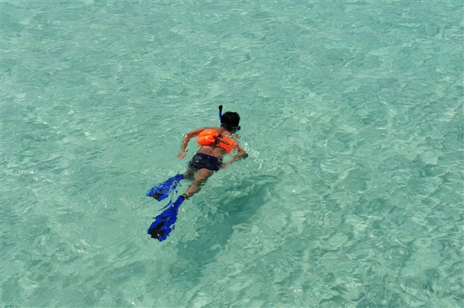 5.浮潜三件套一套(由于从计划到出游期间,本人意外怀孕,所以只给老公备了一套浮潜装备,顺便提一句,我去马尔代夫是孕期第9周和第10周,感觉良好,都说三个月内尽量少旅游,可是我在这期间去了九寨沟和马尔代夫,心情很好,身体也没有不适,甚至感到旅游中,妊娠反应比在家里轻多了,哈哈,胃口超好,连吐得感觉都没了,真是向天借胆啊~~)
