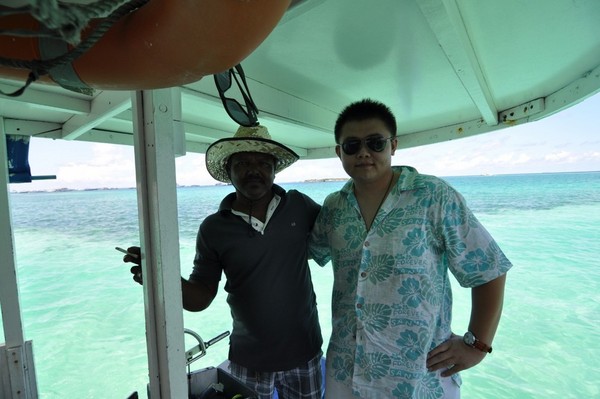 和船老大合影一张,在这张照片以后,我不知道是怎么了。自己一头扎下海了。 我不会游泳。。。跳下去后,抬头看到是船底。。。当时流泪了。。。