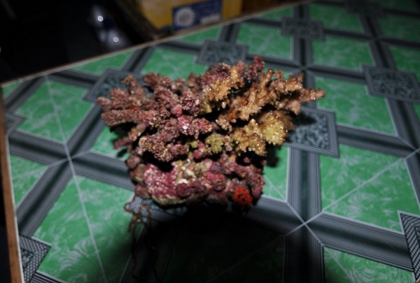 晚上海钓,钓起来一个活珊瑚,,拍照以后扔回海里了。。