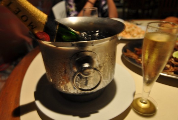开了瓶香槟,和岛上认识的朋友一起坐会