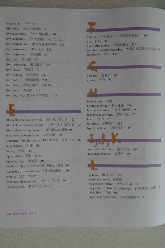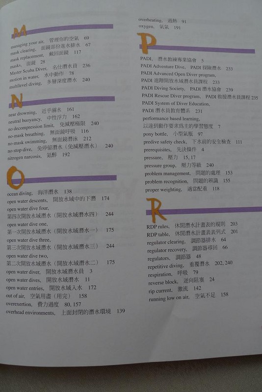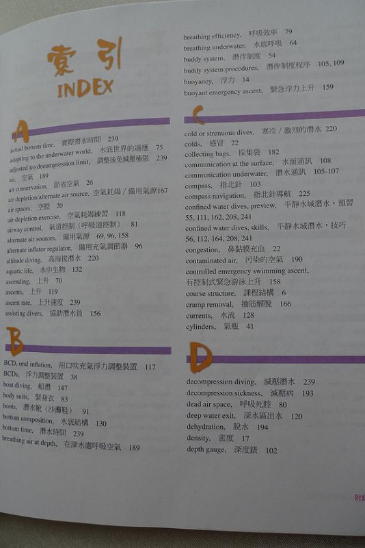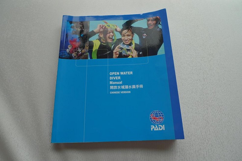 表妹刚在马来西亚考了开放水域潜水员(OPEN WATER DIVER)证书,正好借来教材看看,很厚的一本书,但潜水毕竟是项危险的运动,多学习一些知识有备无患。