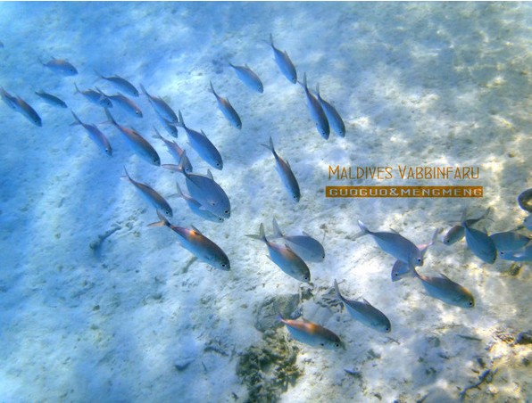 下面的是鱼群的照片哦,早上珊瑚中觅食的鱼很多哦!