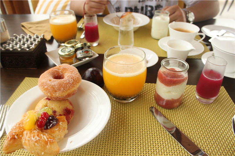 早餐是自助的 面包随便拿 饮料也是免费的