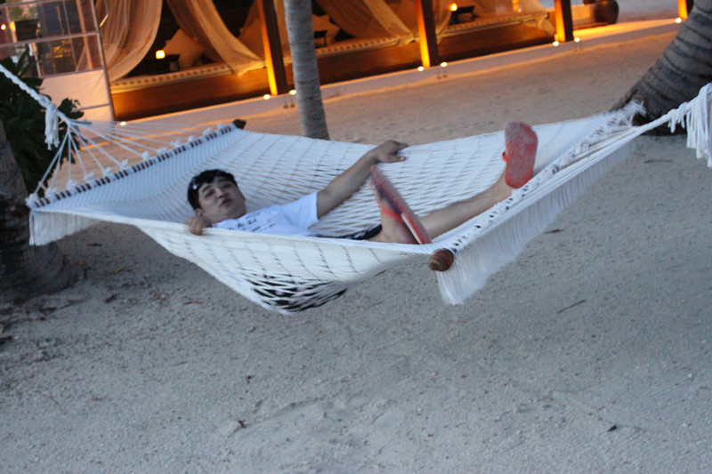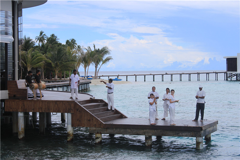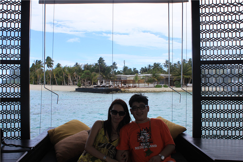 后面是我们的管家 在岛上有什么事都找他 他只当了我们2天沙屋的管家 我们给了他50美金小费 岛上的中文GO告诉我们50到100给管家 吃饭和打扫是5到10美金这个岛小费给的比较高我们花了200美金付小费 如果去一般的岛只要20美金 但是JD的小黑狠热情 不存在歧视中国人 服务狠周到 我们觉得这个小费也是值得的 不过后来2天到水屋与一对上海夫妻结伴才发现我们给多了后来给水屋管家20 因为我们没怎么差遣他 都几乎没看到他人