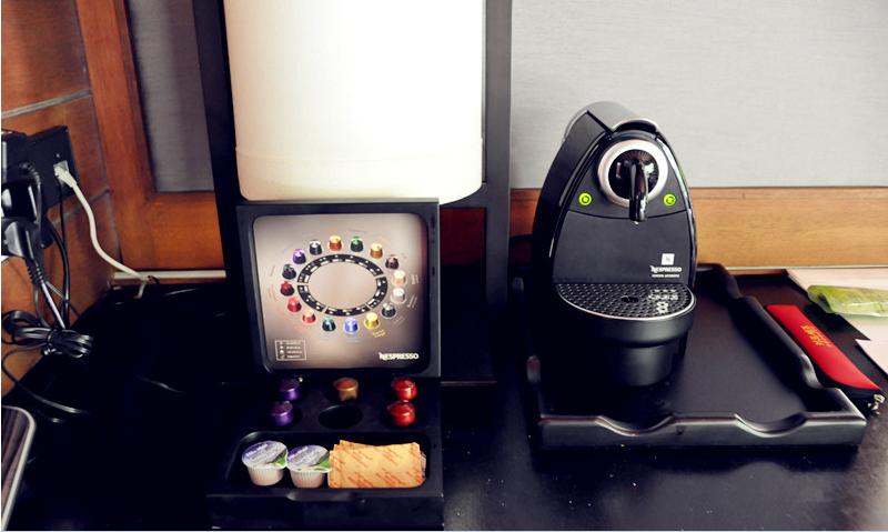 胶囊咖啡和茶,免费,打扫房间的小黑会每天补充,冰箱里除了玻璃瓶的纯水外都是收费的~~~
