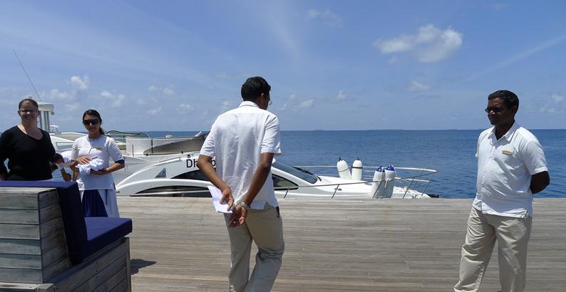 岛上的工作人员把我们和行李送到我们的房间,接下来就是管家介绍房间里的设施和岛上的情况,我们的管家叫HUSSEIN,大眼睛很热情,在岛上的这些天里把我们照顾的很周到。遗憾的是没有合影……