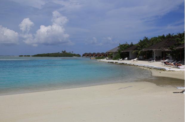 整船人都没一个人钓起来,我们早就想回了,不过旁边几个花了45美金一个人显然很不情愿,拖着不走,等着天都完全黑完了,再不回去都要错过晚饭时间了,才回去对了。还有之前网上说的浮潜可以在迪卡龙买装备一套就100多点,其实到了岛上商店才发现完全没必要,岛上也就卖25美元一套,另外还可以从潜水中心,租用,一天8美元,我就是去租的.今天吃饭的地方就换到了最高级的水屋套房餐厅。。。。。。对了,还有件重要的事情,小费定要给得勤,每天房间里留一美元小费是必不可少的,给了钱,房间收拾得整洁,床单还特别布置得很漂亮,后来收拾房间的黑娃搞熟了,还给我们找了很多免费的各式各样的红茶,最后一天我们走的时候还给了我们一些马币非常精美,这些马币在岛上都要买10美元一套,还有个中国夫妻,更安逸,顿顿都吃了黑娃推荐的龙虾餐,小费也给得勤,最后一天中午70美元的双人自助餐,只收了他35美元。睡到自然睡,这么漂亮的水屋里,睡眠质量相当高,完全没有网上有些朋友说的水屋浪大,太吵,睡不着的情况,早上还是起得早,8点过,来到水屋外的露台上,睡在躺椅上,擦好防晒霜,戴上墨镜,再泡上一杯斯里兰卡红茶,拿上一本杂志开始日光浴了哈,晒够了,就从水屋下水游一会,等着老婆起床后,吃完早餐后带好泳衣,潜水装备又开始了环岛之旅. 这个早餐煎蛋太好吃了,每次都是一次要两个,先是炒蛋,然后是煎,煎蛋花样还多,ONE SIDE,TWO SIDE,我前前后后吃了6个,呵呵,太佩服自己了,后来都不好意思再去了,。。。。。。梦幻岛不大,可能环岛也就一个小时吧,不过我方向感不太好,经常走了几次的地方回来就找不到了,还是老婆厉害,方向感极强,这回选择了和平时完全相反的方向,穿过一片树林,一路上看到了很多奇特的热带水果,不过只能远观而不能伸手哈,逮到 就是5000美金罚款,就是沙滩上的贝壳,珊瑚都不能乱捡的,一路上任何垃圾都是看不到的,最后出现了一片看似毫不起眼的海滩入口。。。就是这个入口,看似不起眼的海滩,走进去之后简直看呆了,美得让人窒息,成了后来我们最喜欢呆的地方这应该是岛上最美的一片海滩了,洁白的沙滩松软细腻,但是很奇怪,海滩上晒太阳的都是老外,没一个中国人,虽然到现在我都不知道它叫什么海滩,但我给它取了劲爆的个名字,那就是 ------比基尼海滩。