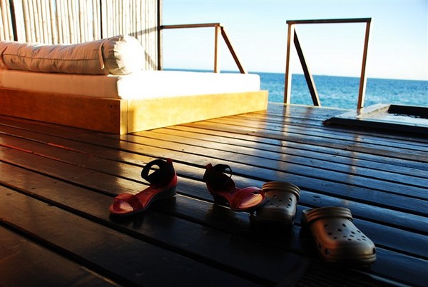 在不可免俗的对酒店拍了一气之后,我们席地而坐相倚面对360度无垠海景,那种心动意静只听到自然呼吸的情怀,那种如第一眼初恋心潮暗涌的情愫,那种这才是人生的心情……文字太有限。只觉在此处若不相爱都是一种罪过(好琼瑶阿姨啊,但真觉如此),莫非自然真有神奇魔法,能让心更近,吻更醇。 片刻后,长途奔波的困意袭来,大狗干了他认为人生最重要的三件事之一:睡觉,其他两件容后再述。我则将行李按序摆好,护肤品梳子洗脸帕整齐摆放在洗手台,衣服一件件挂在衣柜,仿若我要在此停留许久一般认真。