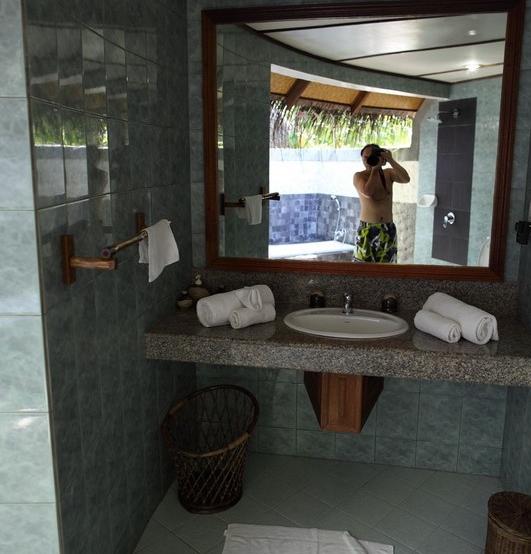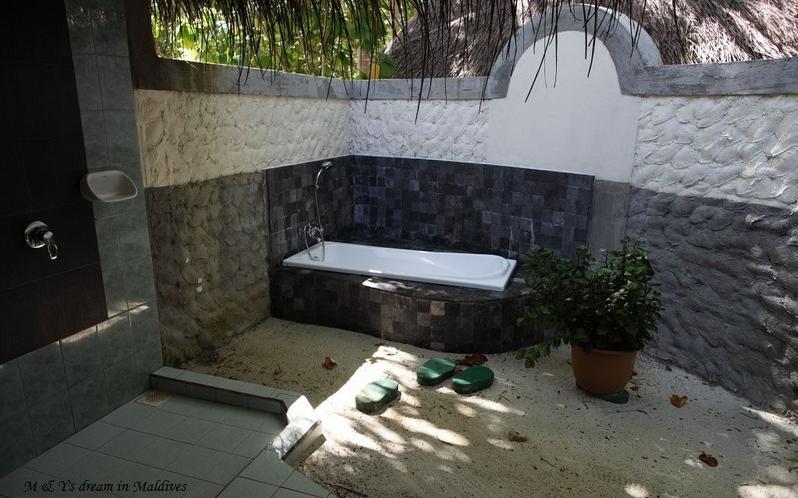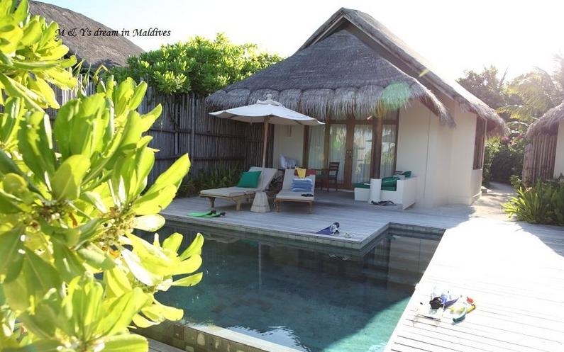 路过沙屋,貌似带泳池的。浮潜工具就是这么放了一夜。木有人会乱拿滴。