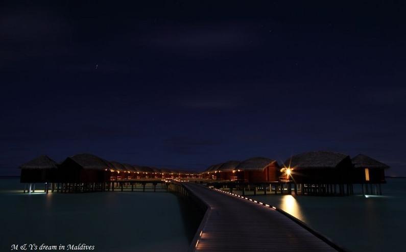 水屋的栈桥,右边一排单号的房是日出房,左边双号的是日落房