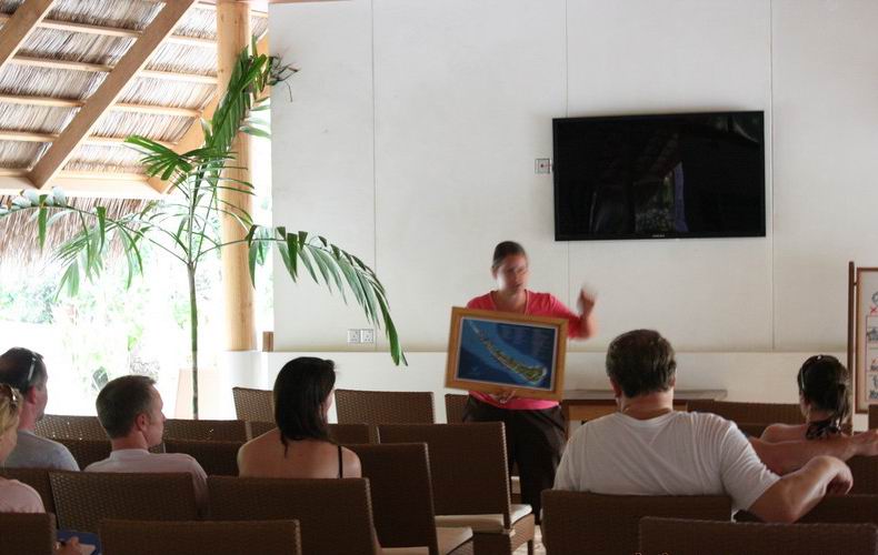 岛上可玩的不少,但是除了自己去海边浮潜、游泳外,出海的项目都是收费的。可以钓鱼、出海深浅、出海浮潜、出海钓鱼等,娱乐项目很多,要是不差钱,可以都尝试下。岛上活动都是自助式的,到服务中心预约,那里有个小本可以让你填写。提前15分钟到指定地点集合就好,如果你有事不去,钱也照收。