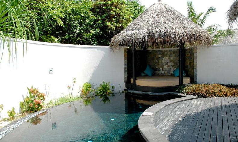 第三天我们换到了沙屋,进门后的惊喜,我们被升级到了豪华套房,区别是后院多了一个私人泳池