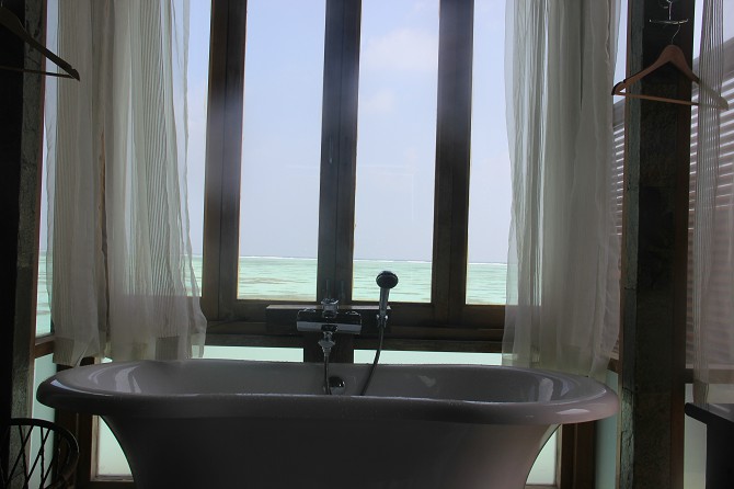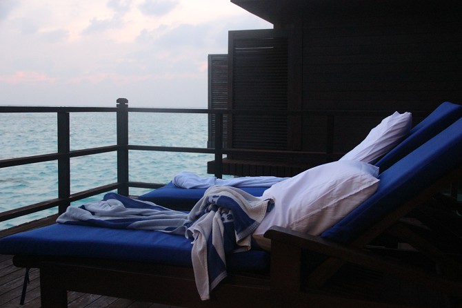 早上就知道回来要住水上屋,整天都在期待,到麻袋之前就做过攻略,当时之所有选择双鱼就是特别喜欢他的室内外两个浴缸,可以边欣赏美景边泡澡……(等麻袋之行结束后才知道双鱼是日本人开发的岛,有点小别扭,我是个不喜欢日本的人,个人喜好哈,不涉及其他)。