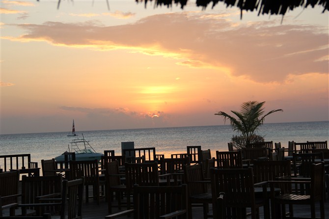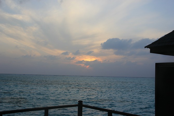 海上日出,说实话,我能和LG运气不好,住水屋的这两天早上天气都不怎么好,日出也不是很安逸,这大概就是工作人员没有