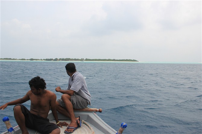 我们的船远远地看到个有个大大的拖尾沙滩的小岛……