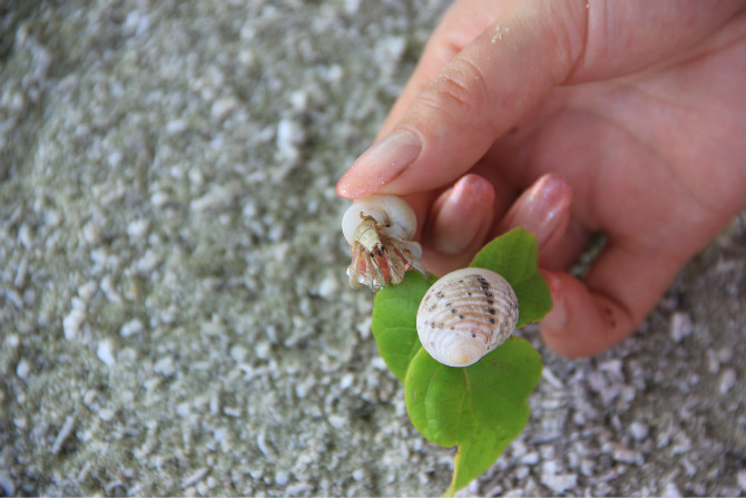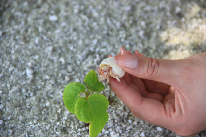 发现寄居蟹,这种蟹岛上很多,有时候走路没注意到也会不小心踩到一个……好萌……