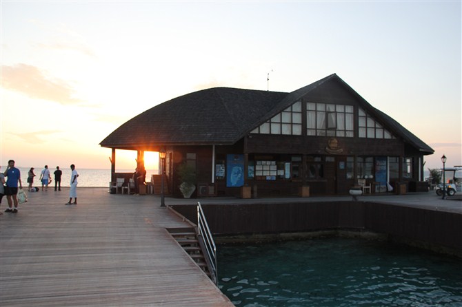 回程了,上岛天也黑完了,码头上点了灯,说实话我们的身体有点小小不适应,毕竟他们的时间晚两小时,我和LG还是很爱睡懒觉的,不过等我们醒来时在当地还算早的,最不习惯的是晚餐,一般7点或者7点半开餐,北京时间已经9点了,饿死了,还好我和LG饮食比较习惯(我是纯粹的辣妹子,无辣不欢,在岛上居然吃其他口味的比吃粤菜还习惯,带去的老干妈都没吃完),上岛吃了很多顿,每顿都是几大盘,哎,在中国人里我们是很吃得的吧,还好是自助餐,要是点餐的话不吃穷才怪。