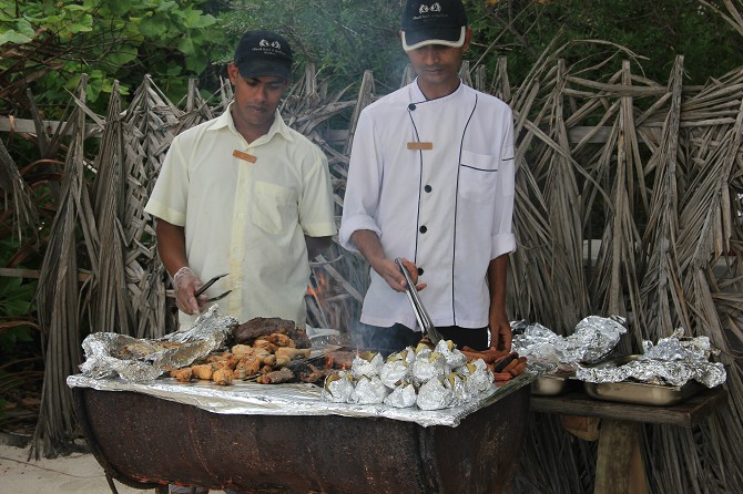 我们四个人NOTHING,不过在这里钓是种乐趣,鱼反而不重要,虽然没掉到鱼,不过欣赏了海上日落,船长给大家每人发了2瓶饮料、1大瓶纯净水(要知道在岛上这至少值15美金),还请我们吃了船上现烤的鱼串,蘸着他们自制的酱,那是相当的美味,顺便说下酱,在岛上吃了那么天的鱼和酱,这个酱是我吃的最好吃也是最适合蘸鱼的酱了。只能说每人35美金也值了。